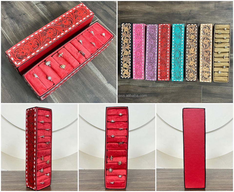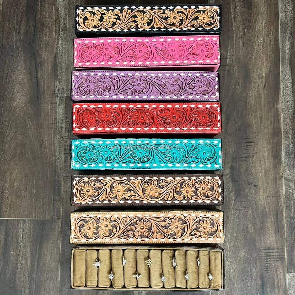 Hand Tooled Cow Leather Ring Display BoxProduct name