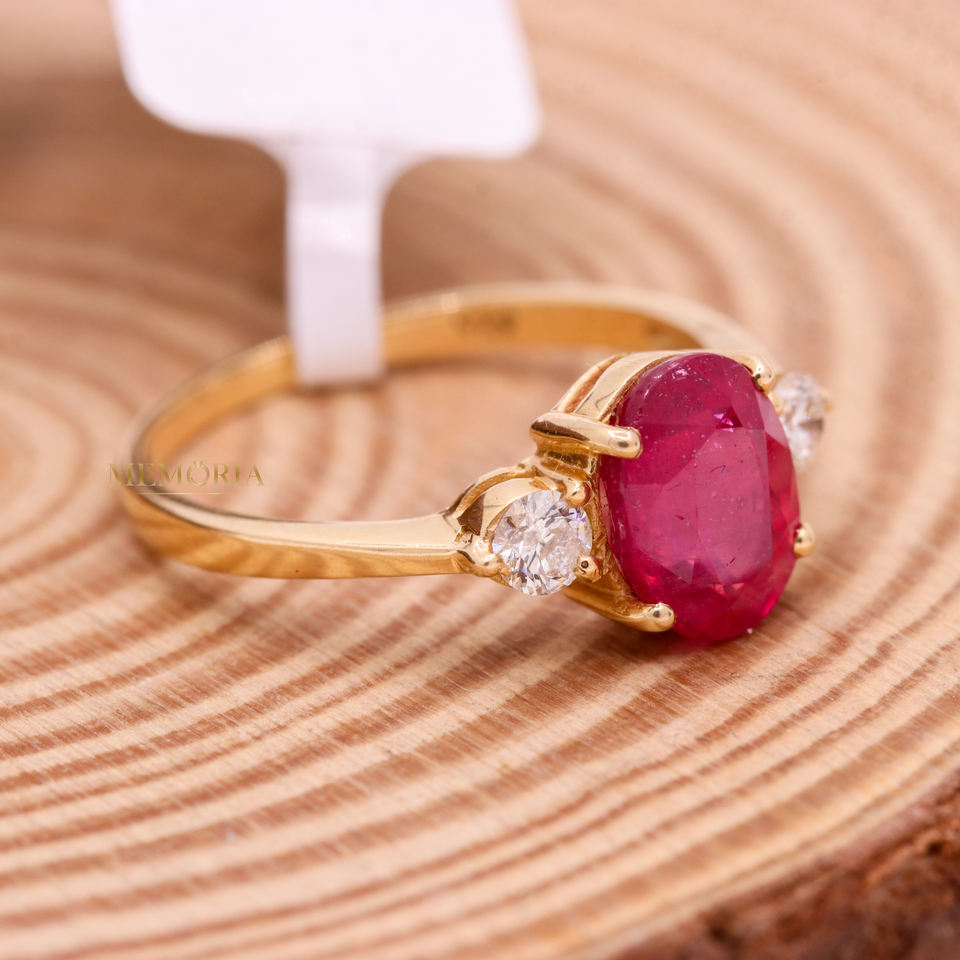 Nombre del Producto:Anillo de oro amarillo de 14 quilates con rubí y diamantes