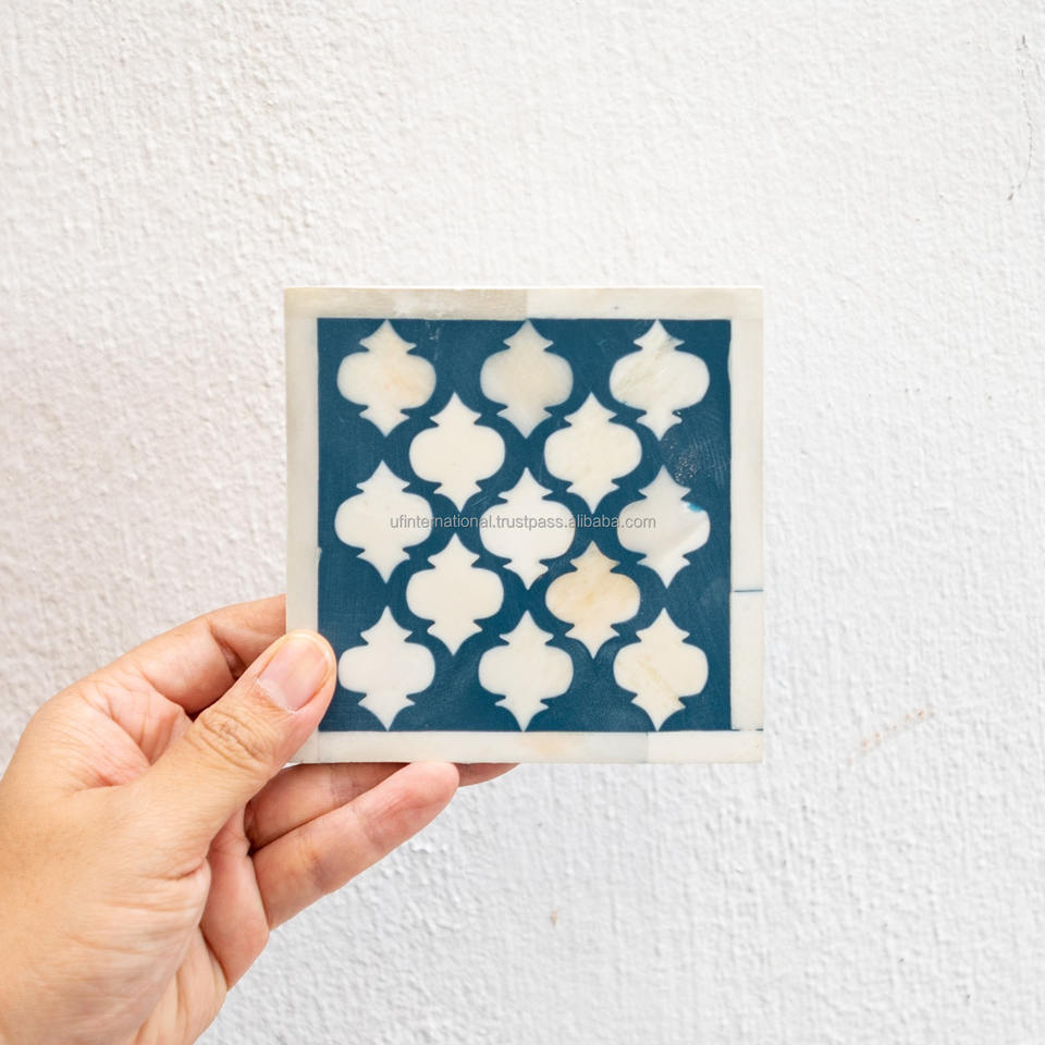 Posavasos hecho a mano con incrustaciones de hueso, posavasos para servir té y forma cuadrada con el mejor color blanco y negro, venta al por mayor