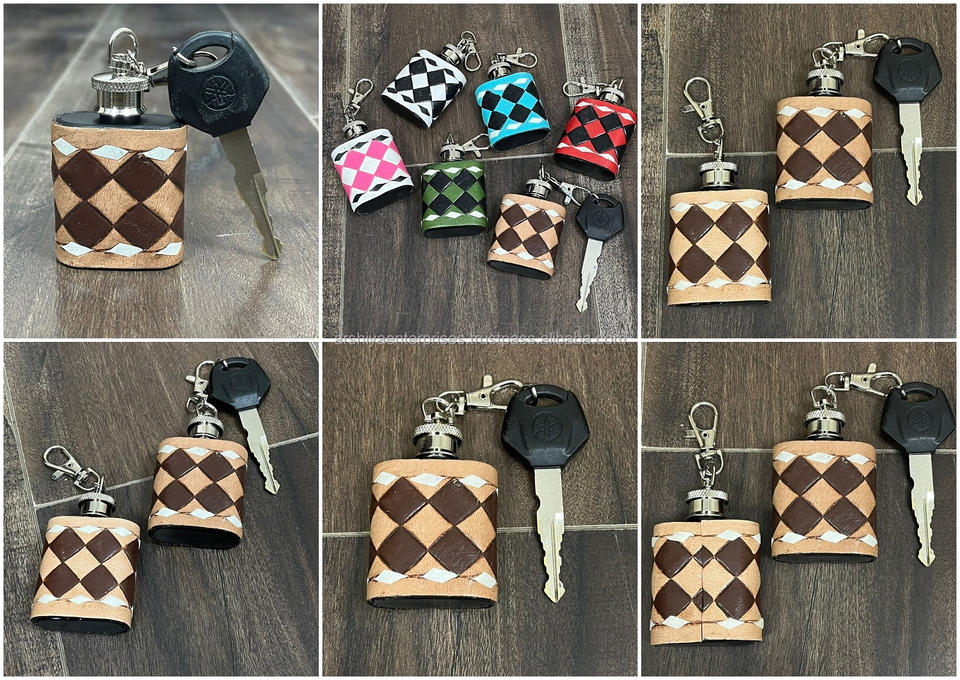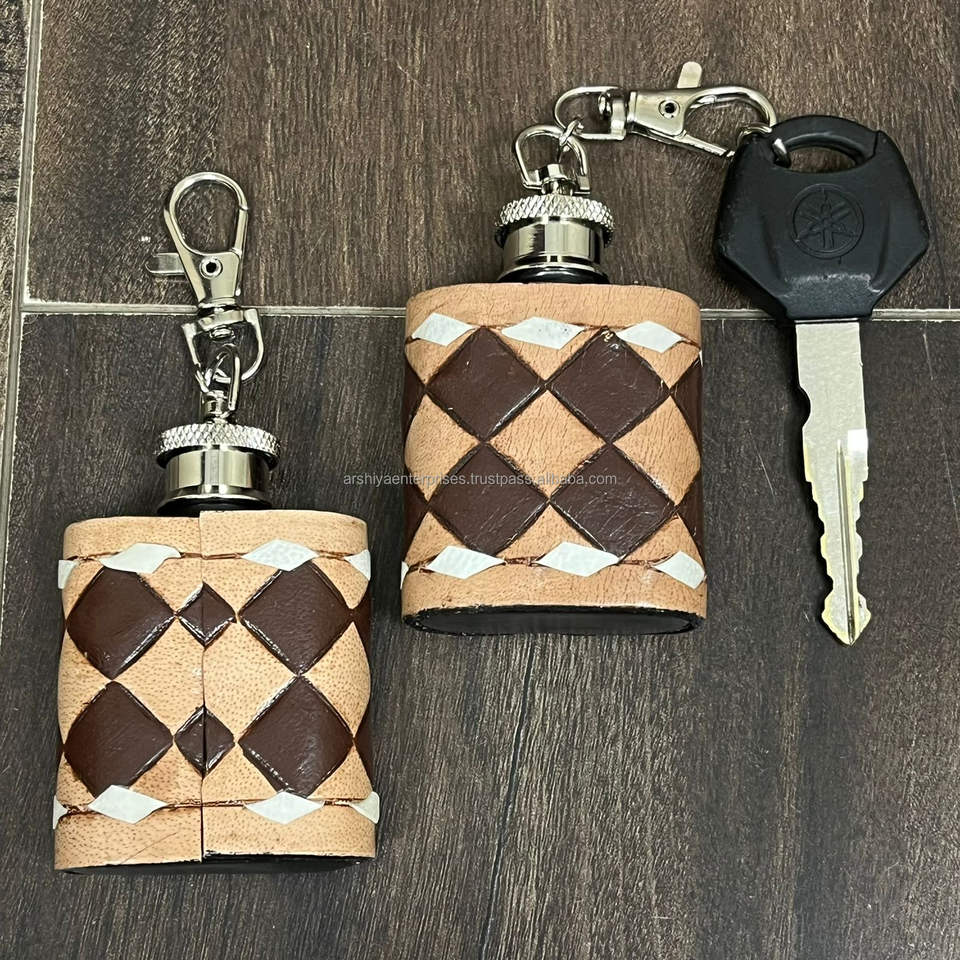 Nombre del Producto:Petaca de acero inoxidable con estampado de cuadros y llavero