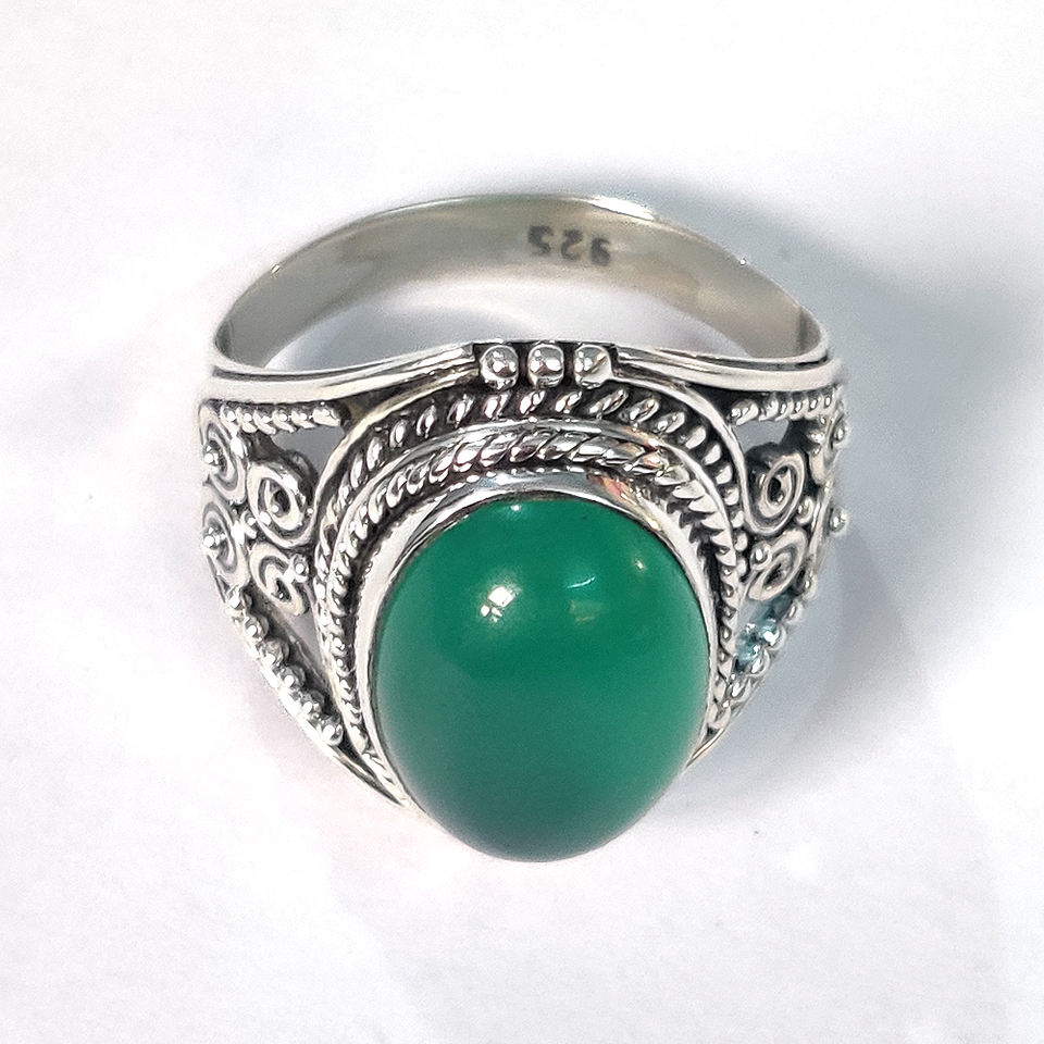 Palabra clave:Ónix verde anillo de plata anillo de