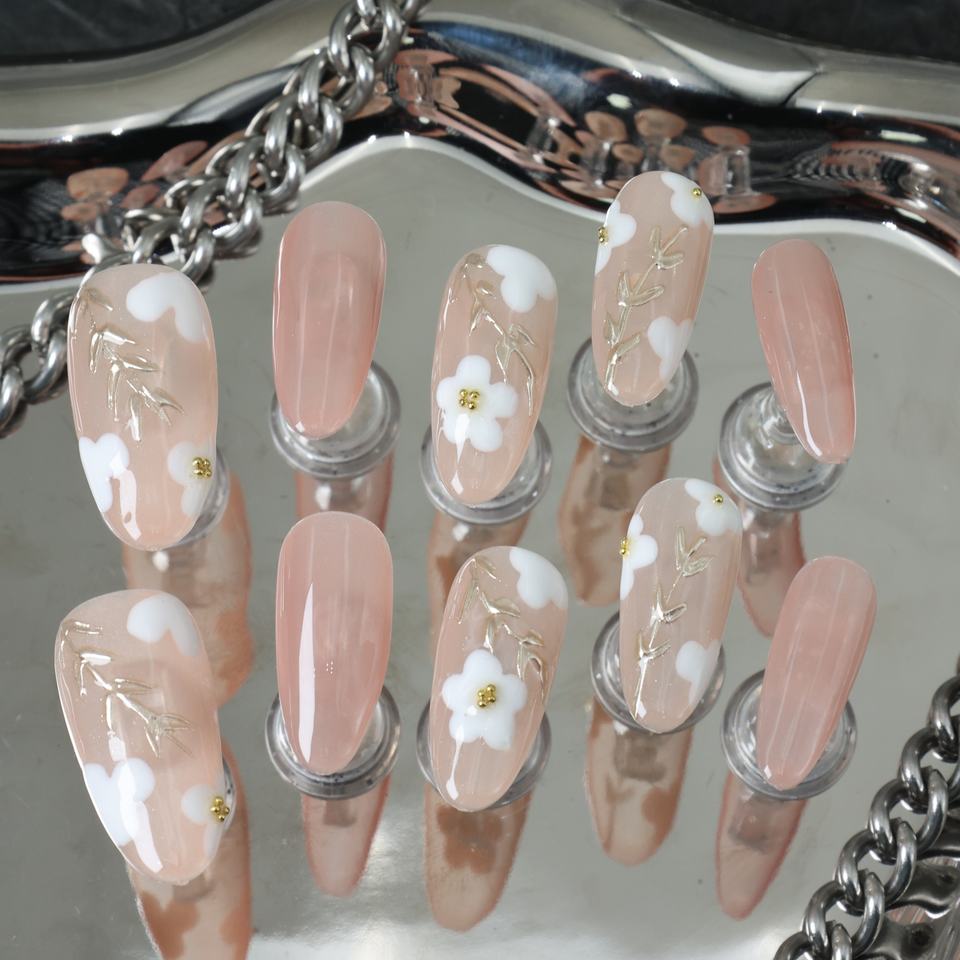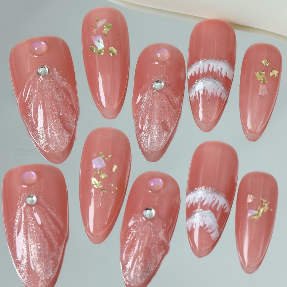 Uñas Postizas de Lujo Hechas a Mano al por Mayor, Estilo Y2K con Pedrería, Forma Almendrada, Cobertura Completa 3D, Puntas Francesas, Uñas Acrílicas Reutilizables