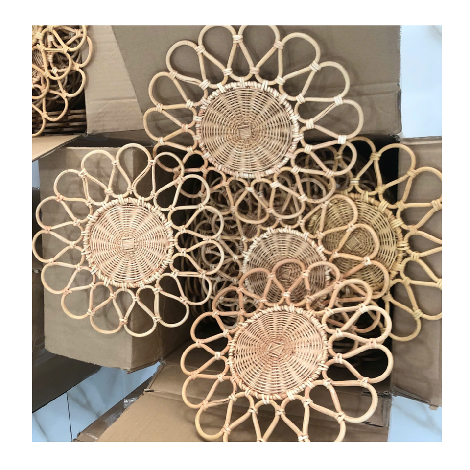 Plato de ratán Natural hecho a mano al por mayor y mantel de ratán tejido para tetera plato Mesa cuenco posavasos y decoración