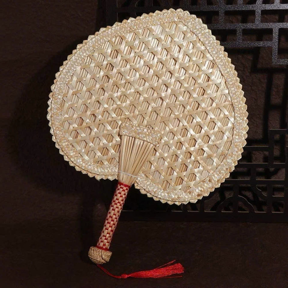 Abanicos Hechos a Mano al por Mayor de Paja de Trigo con Formas Únicas de Hojas y Calabazas con Bordado Exquisito de Seda Roja para Regalos Festivos.