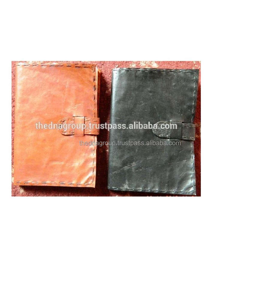 Venta al por mayor, hecho a mano, puntada lateral lisa con cinturón, diario de cuero de aplastamiento fino