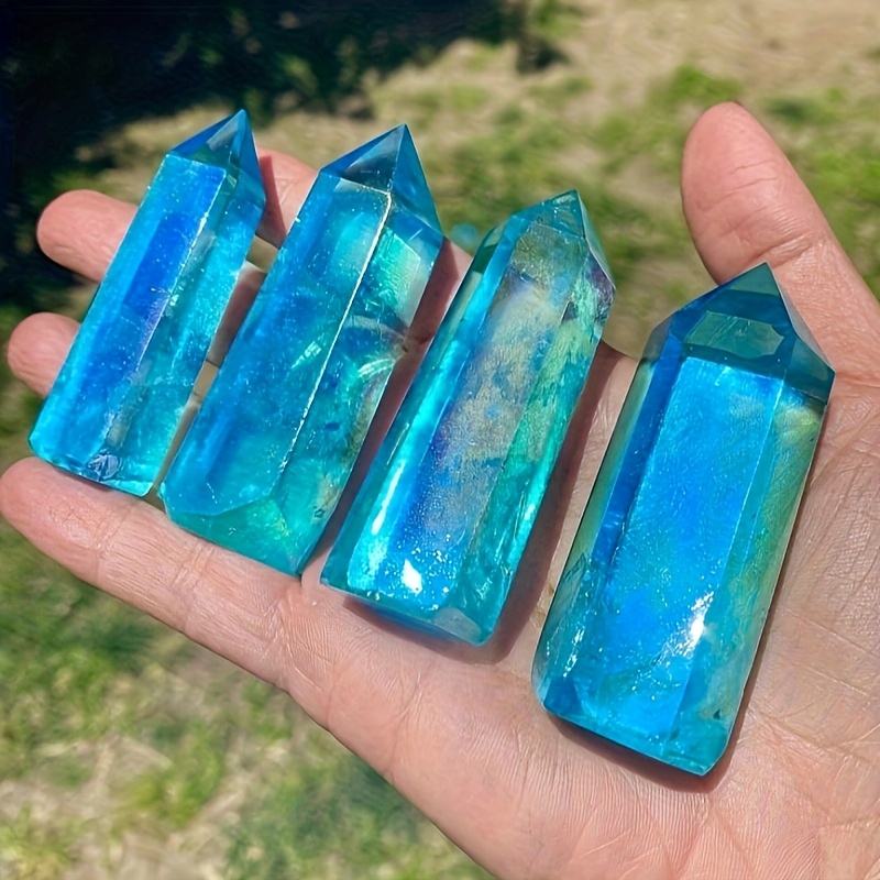 Nombre del producto:Puntas de cristal azul de cuarzo transparente galvanizadas