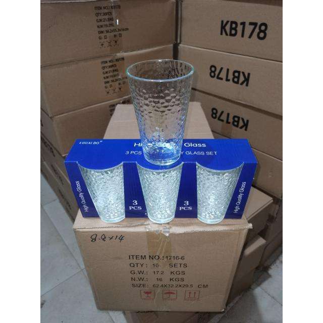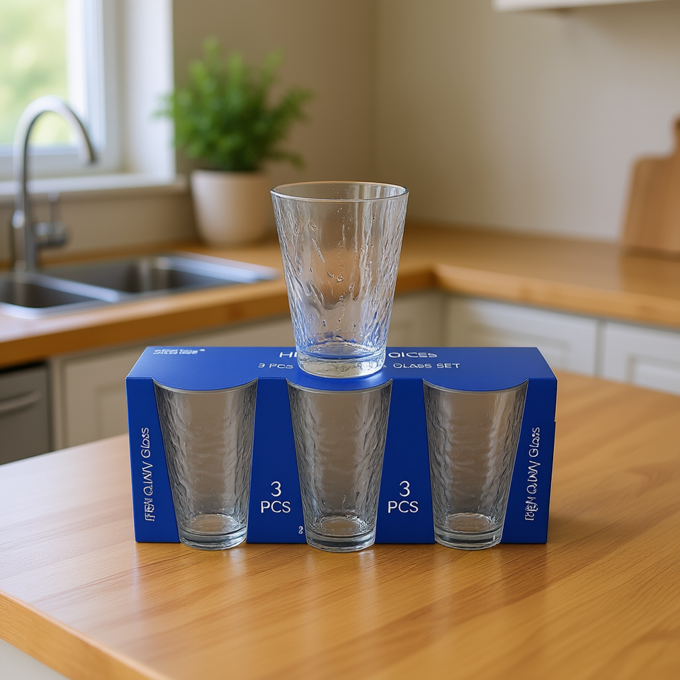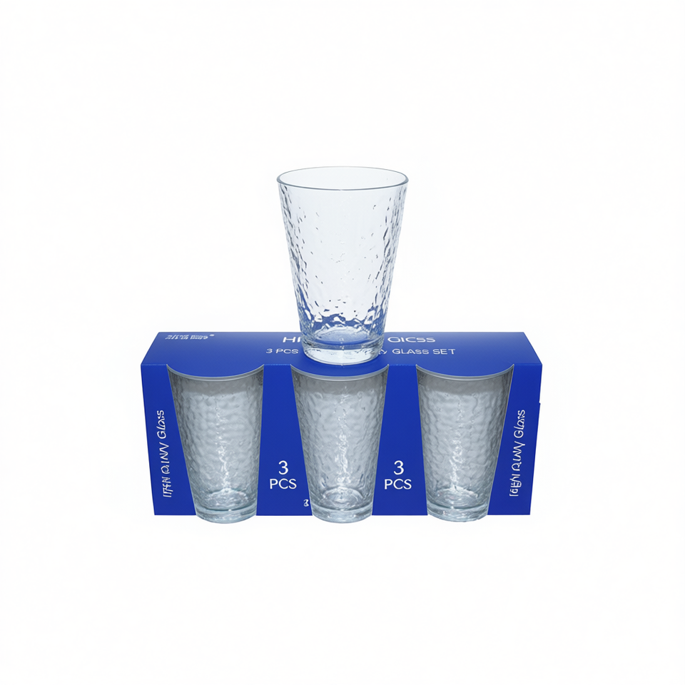 Juego de 3 Vasos de Vidrio Martillado SUDA RESOURCE SA DE CV, Vasos para Beber, Uso Doméstico