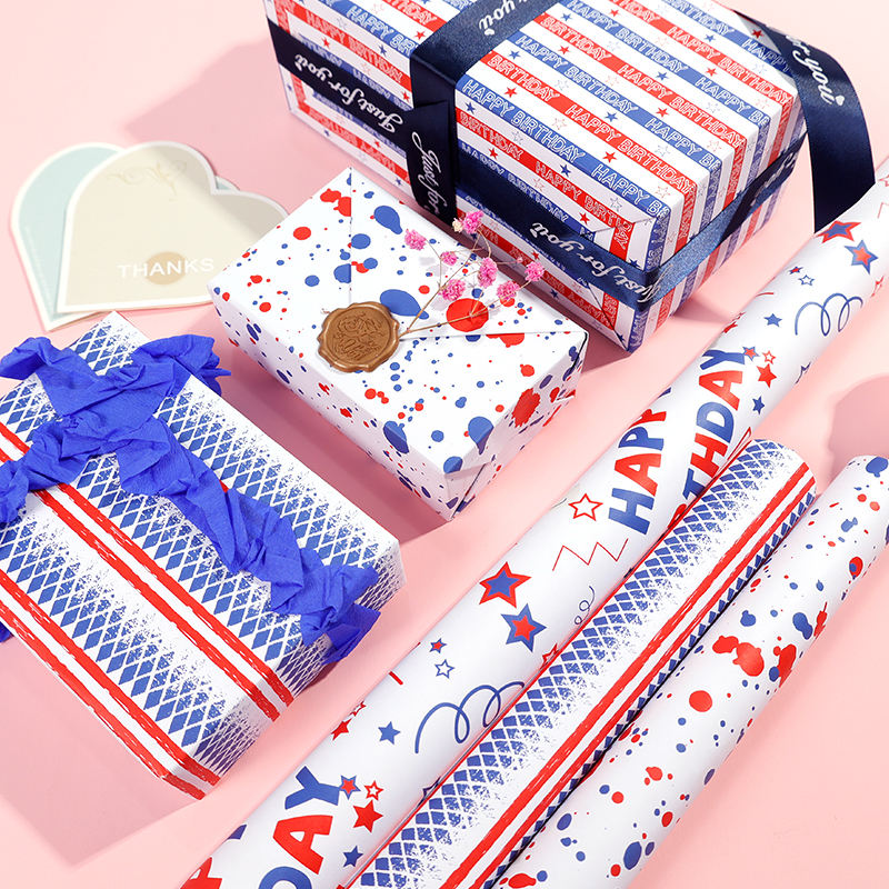 Venta al por mayor de rollos de papel tisú de cumpleaños de alta calidad rojo y azul embalaje rollo de papel de regalo artesanía superior