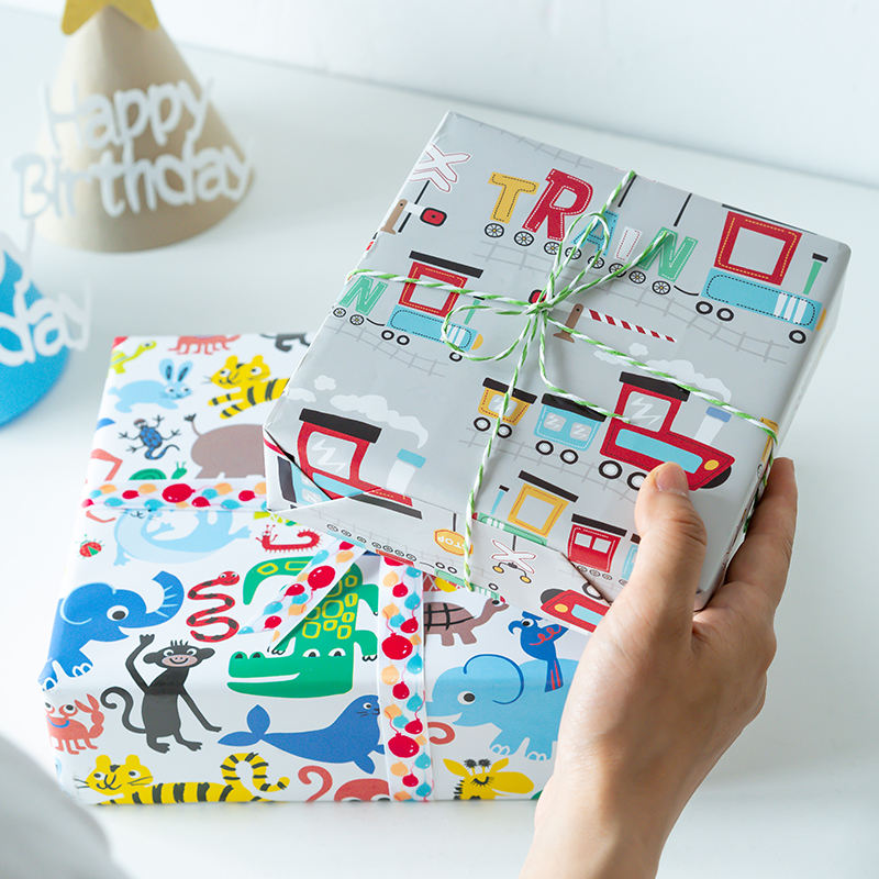 Venta al por mayor de alta calidad de papel de cumpleaños rollos de dibujos animados del Día de los niños embalaje rollo de papel de regalo artesanía superior