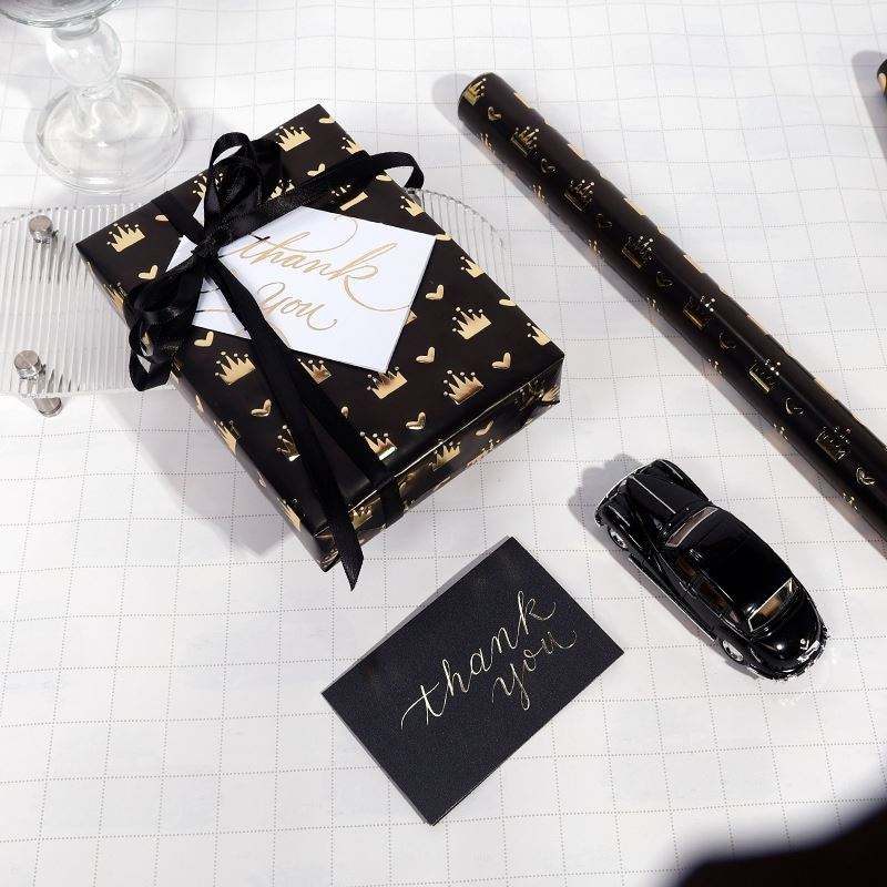 Venta al por mayor de rollos de papel de cumpleaños de alta calidad Negro Oro Embalaje Rollo de papel de regalo Artesanía superior