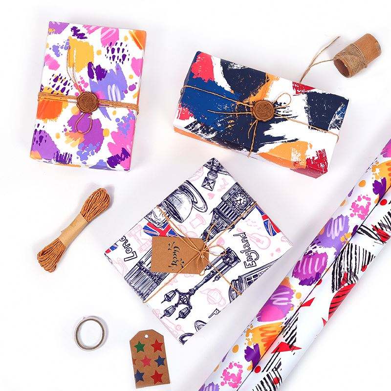 Venta al por mayor de rollos de papel de cumpleaños de alta calidad Graffiti embalaje abstracto rollo de papel de regalo artesanía superior