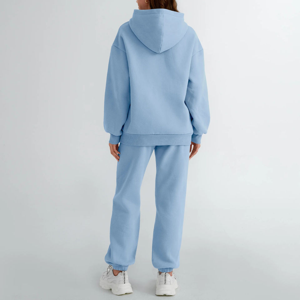 Venta al por mayor de alta calidad en blanco logotipo personalizado impreso holgado de gran tamaño sudaderas con capucha y pantalones de chándal conjunto de dos piezas chándal para las mujeres