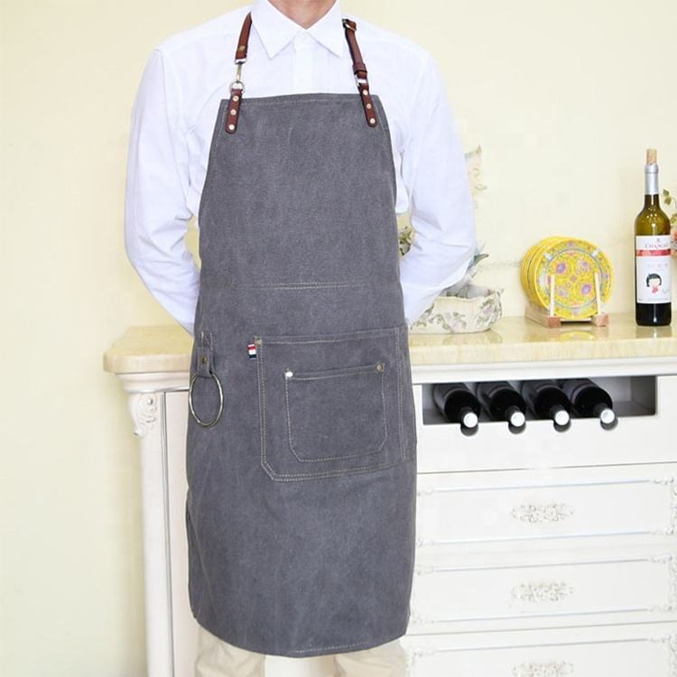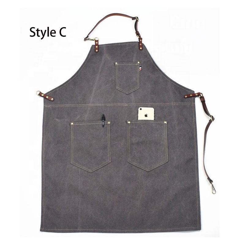 Delantal de lona de alta calidad con múltiples bolsillos, delantal impermeable para salón de jardinería, con logotipo ajustable impreso, venta al por mayor