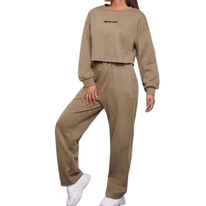 Conjunto de chándal de dos piezas de algodón de alta calidad al por mayor chándales en blanco informales de otoño para mujer