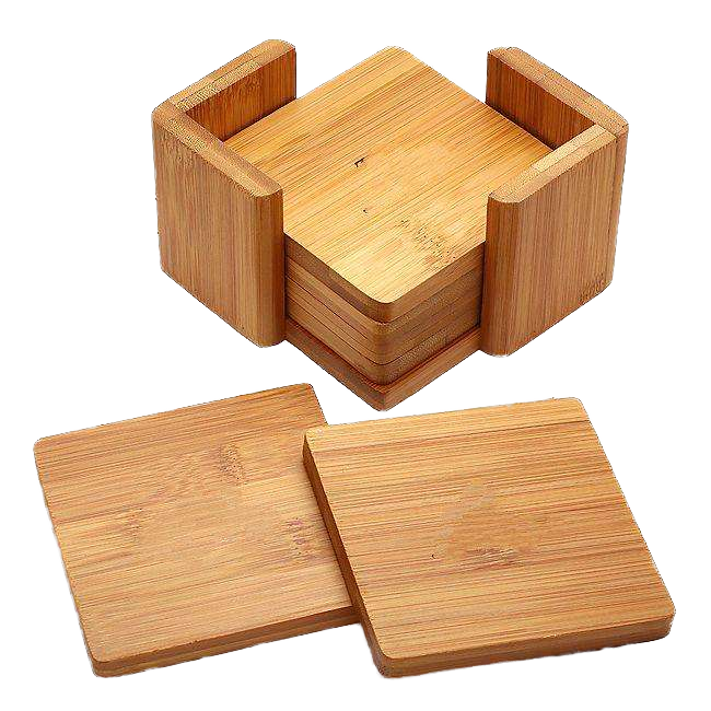Posavasos Cuadrados de Bambú Rústico de Alta Calidad al por Mayor con Logotipo Personalizado, Ecológicos, Hechos a Mano en India