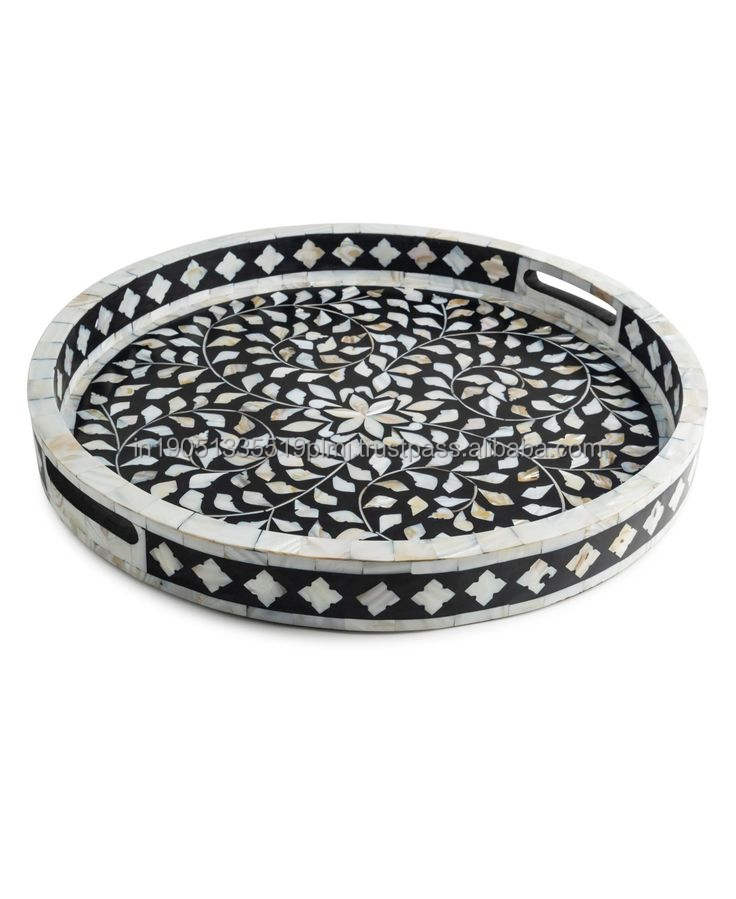 Bandeja de Servicio de Madera de Mango Esmaltada Personalizada de Alta Calidad al por Mayor para Restaurantes y Hoteles, Suministros Decorativos para Ramadán