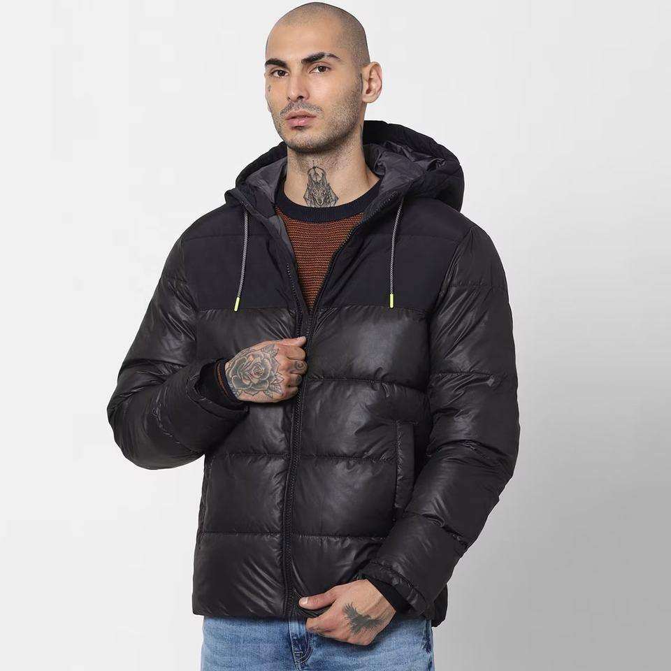 Chaqueta acolchada de invierno personalizada de alta calidad al por mayor para hombre Abrigo acolchado de burbujas chaqueta de nailon negro