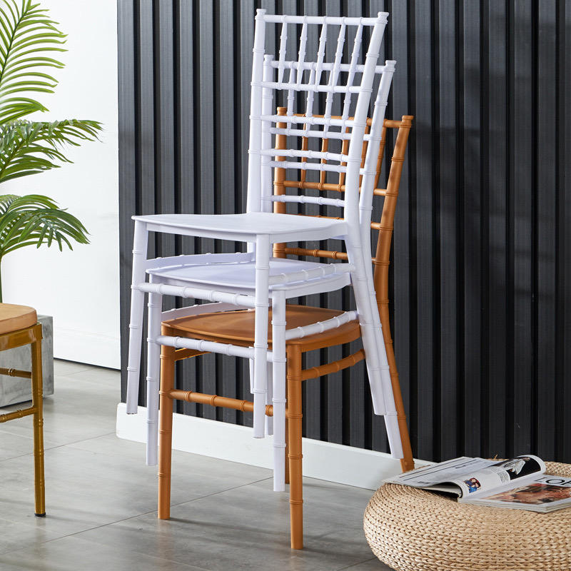 Sillas de Comedor de Plástico PP Apilables, Duraderas y de Alta Calidad para Banquetes, Hoteles, Bodas y Eventos, Estilo Tiffany Chiavari, Color Blanco