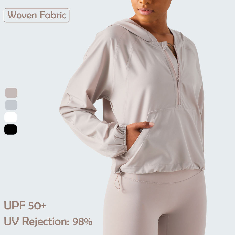 Sudaderas con capucha lisas y media cremallera con protección de tela tejida con diseño de Bolsillo grande frontal de alta calidad al por mayor