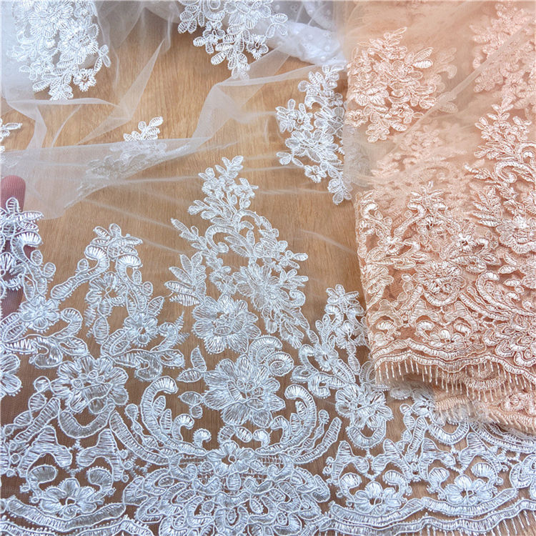 Nombre del producto:Tela textil de poliéster y tul con encaje bordado para novias, ropa de boda