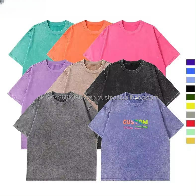Venta al por mayor de alta calidad de los hombres camisetas de gran tamaño Unisex 100% algodón lavado pesado serigrafía camiseta impresa