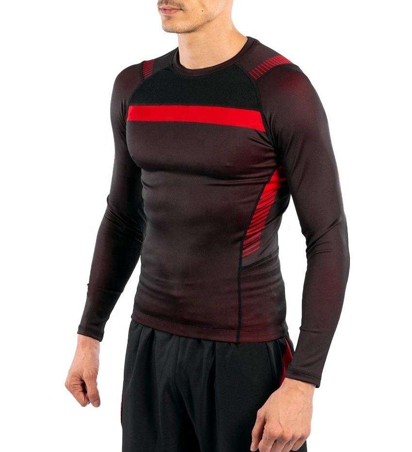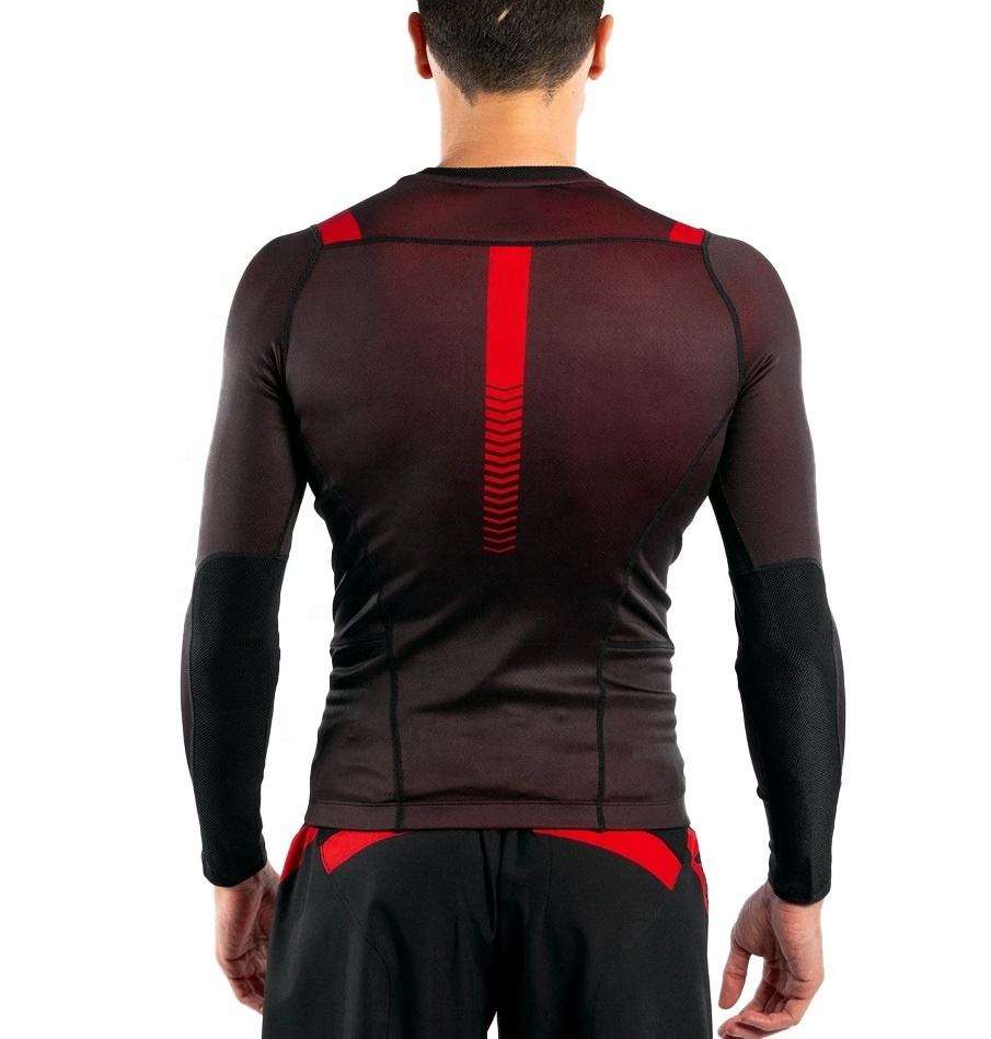 Rashguard de Alta Calidad para Hombre, Personalizado con Estampado, Compresión, Manga Larga, Negro y Rojo, Precio Bajo para MMA, Venta al Por Mayor