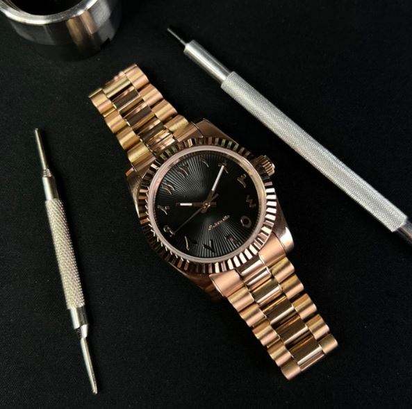 Relojes Mecánicos Automáticos de Alta Calidad al por Mayor con Movimiento Mod, Números Arábigos en Oro Rosa para Hombre y Mujer