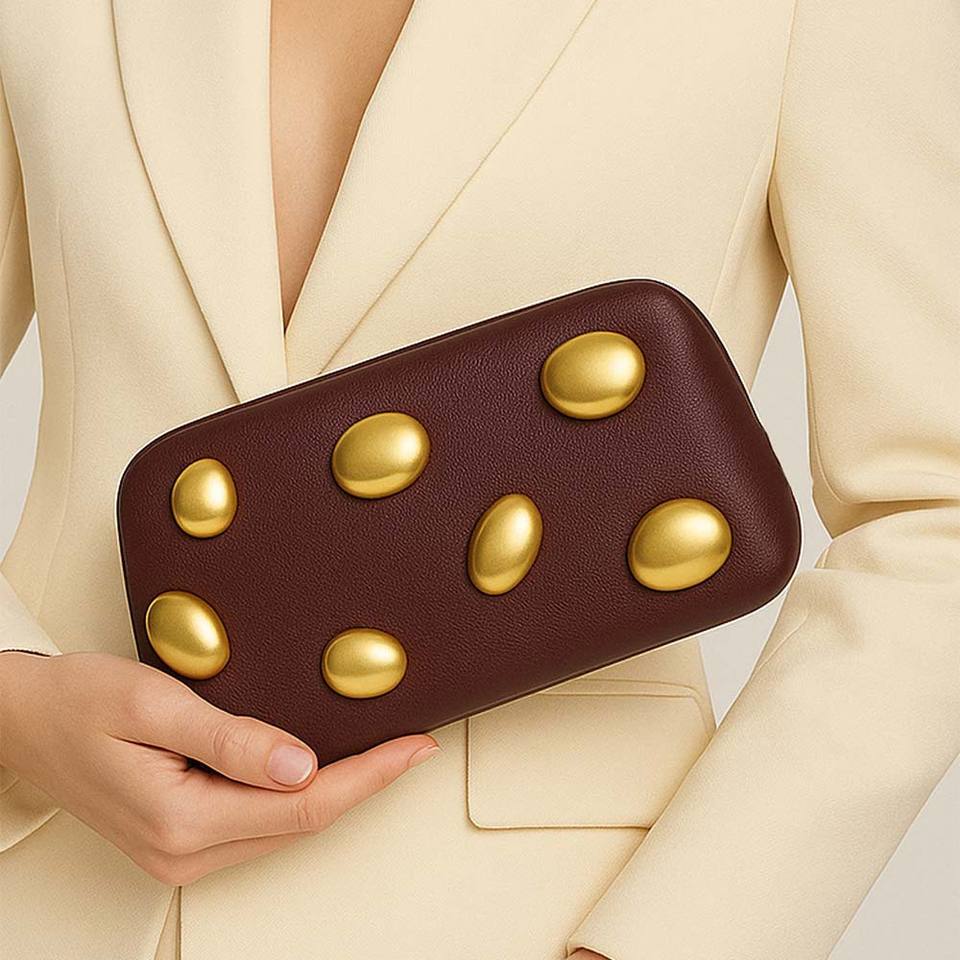 Venta al por mayor de alta calidad multicolor PU cuero remachado embragues monederos mujeres fiesta banquete bolsos de noche