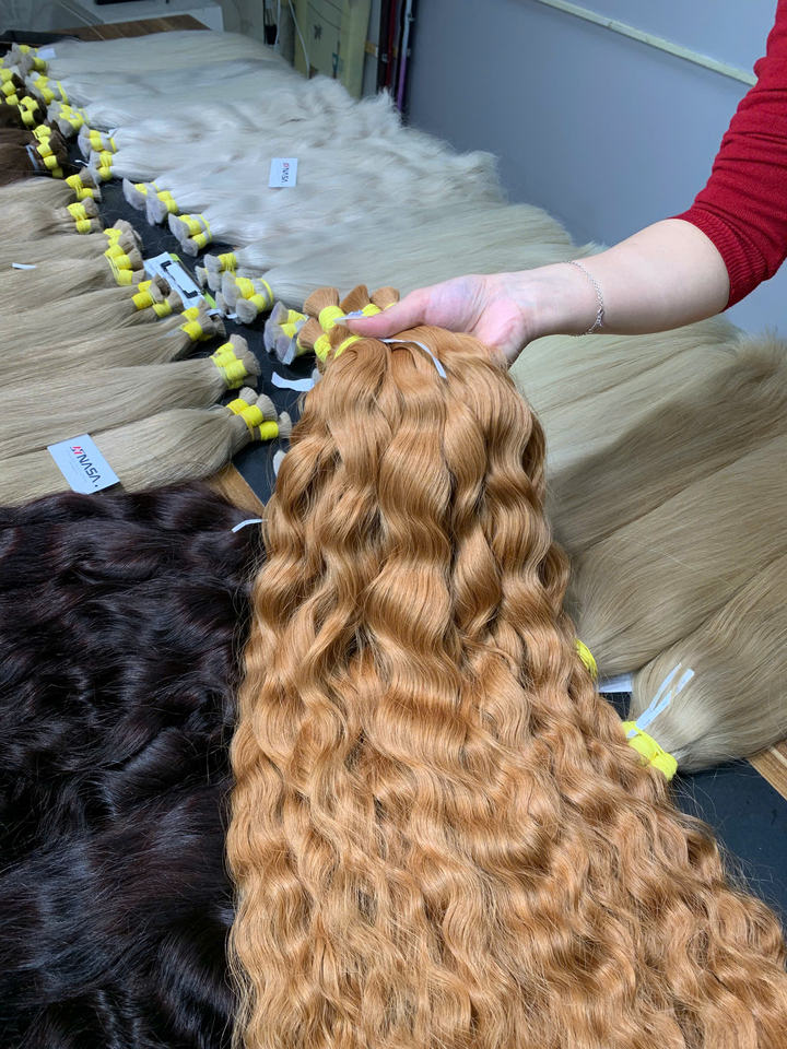 Extensiones de Cabello Humano Virgen Vietnamita, Ondulado Marrón Natural, de Alta Calidad, Super Double Drawn, al por Mayor