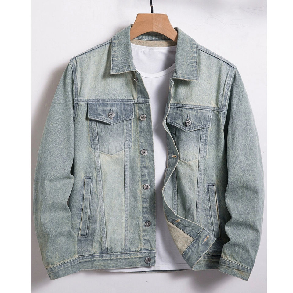 Venta al por mayor de alta calidad de gran tamaño de la moda Casual Jeans Chaquetas de mezclilla Hombres Ropa Plain Dyed Denim Jeans Chaquetas Chaqueta para hombre