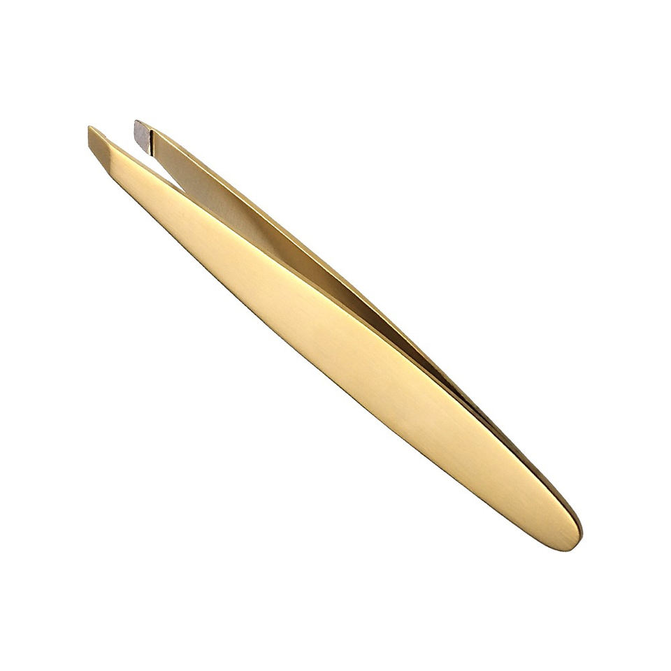 Pinzas Profesionales para Cejas Inclinadas de Acero Inoxidable con Baño de Oro, Herramienta de Belleza y Cuidado Personal