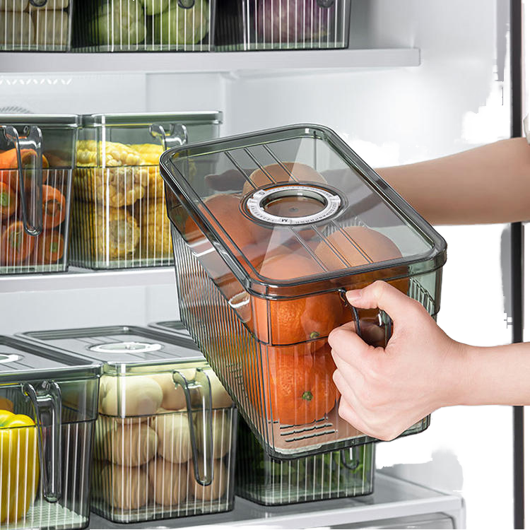 Caja de Almacenamiento de Alimentos de Plástico Rectangular Apilable de Alta Calidad al por Mayor, Contenedor Especial para Congelador con Asa para Verduras