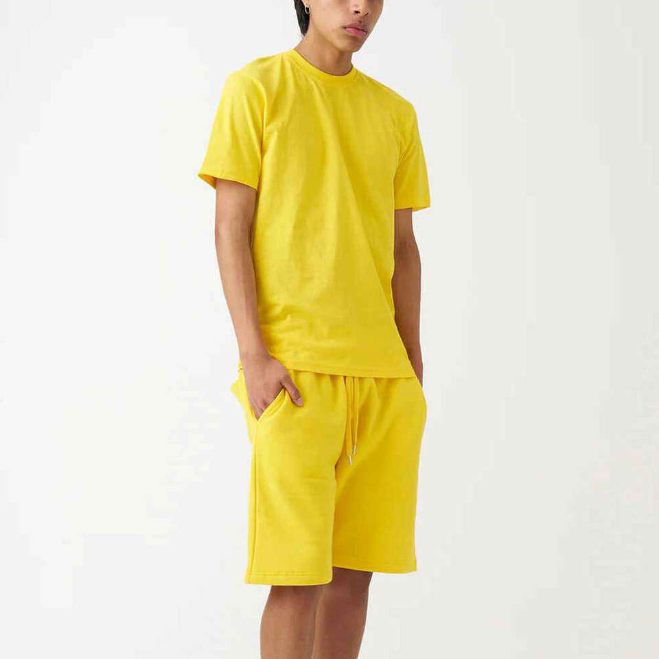 Venta al por mayor de alta calidad camiseta pantalones cortos conjunto de dos piezas de 2 piezas de verano Casual para hombre ropa camiseta y conjunto corto de Color amarillo cuello redondo