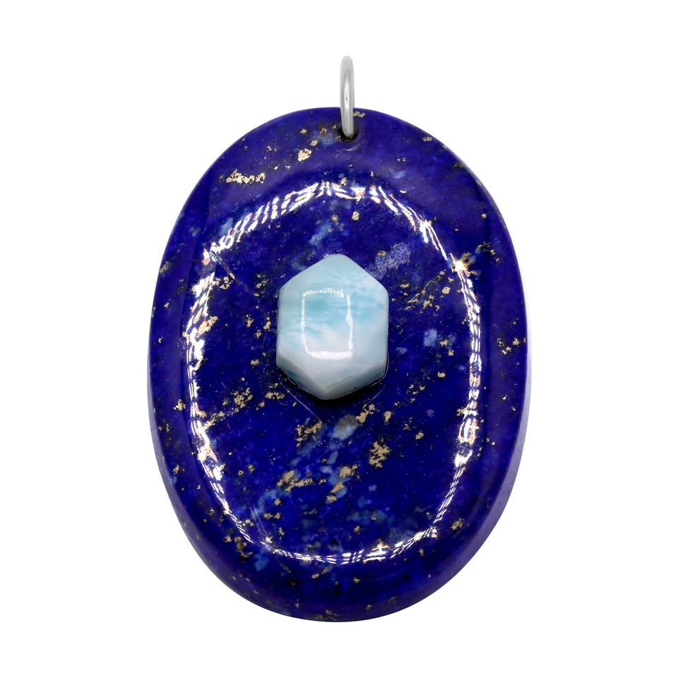 Nombre del elemento:Estilo Vintage Real Lapis Lazuli & Larimar Piedra Preciosa Colgante Hecho A Mano