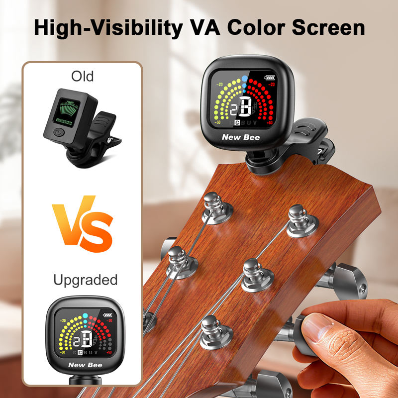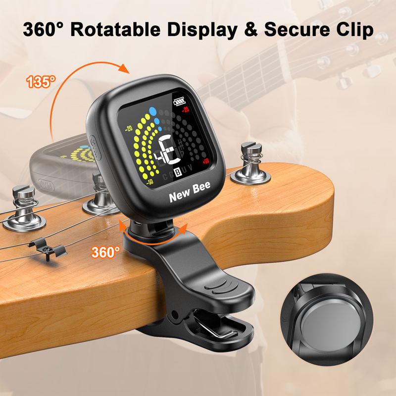 Afinador de Guitarra con Clip de Alta Visibilidad y Pantalla a Color, Recargable, para Guitarra, Ukelele, Bajo, Accesorios para Instrumentos