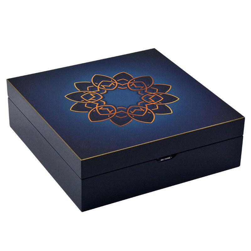 Caja de Perfume Rectangular de Alta Gama Personalizada, Hecha a Mano con Corte Láser, con Tapa con Bisagras, Acabado Azul Mate, Madera MDF, para Regalo y Artesanía, Venta al Por Mayor