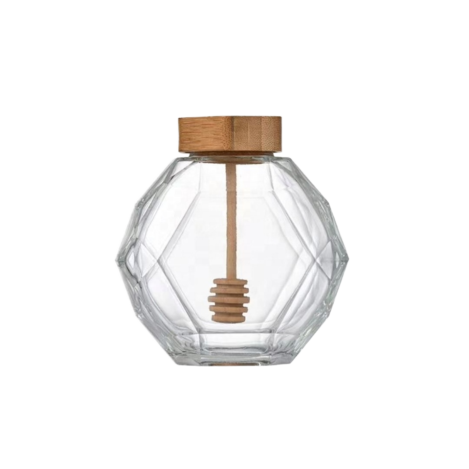 Nombre del producto:Botella hexagonal del almacenamiento del envase de cristal con el corcho de bambú de la cubierta