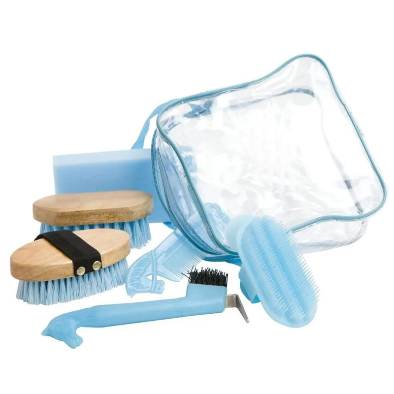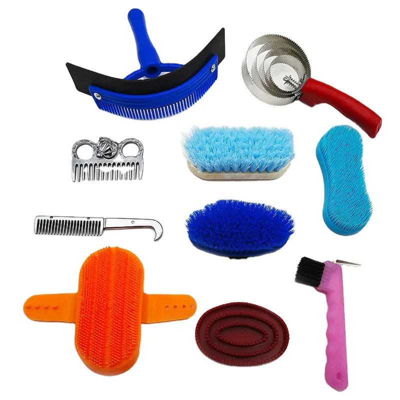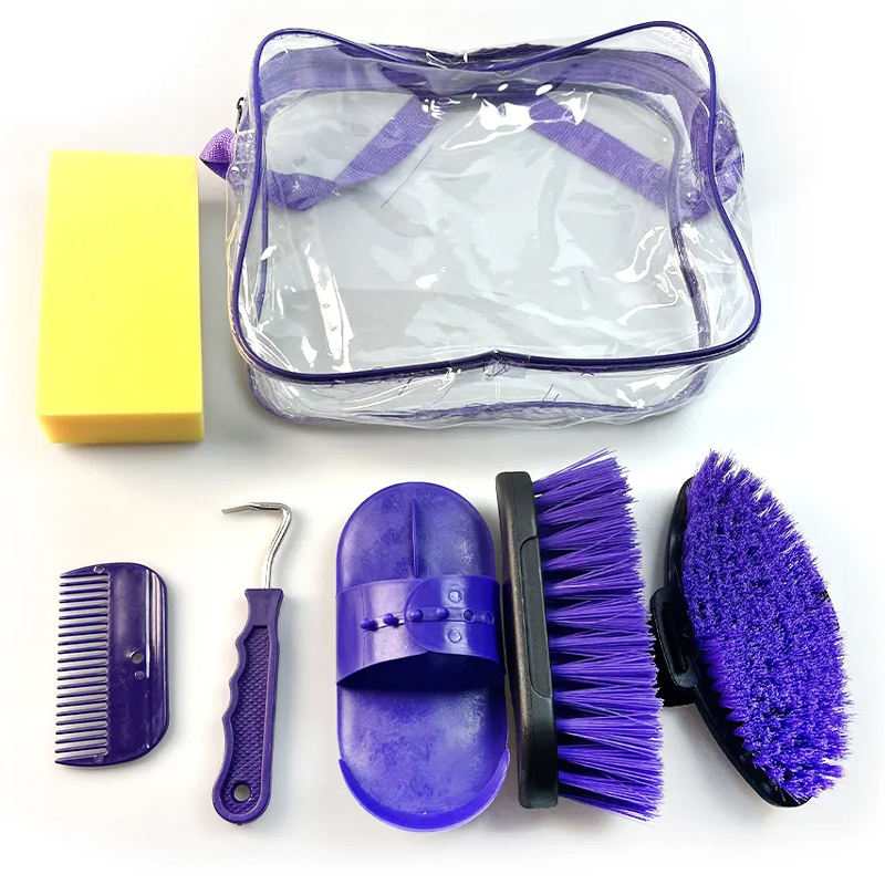 Venta al por mayor de herramientas de limpieza de caballos Kits DE ASEO peine cepillo de curry con caja organizadora de plástico portátil de almacenamiento de marca personalizada