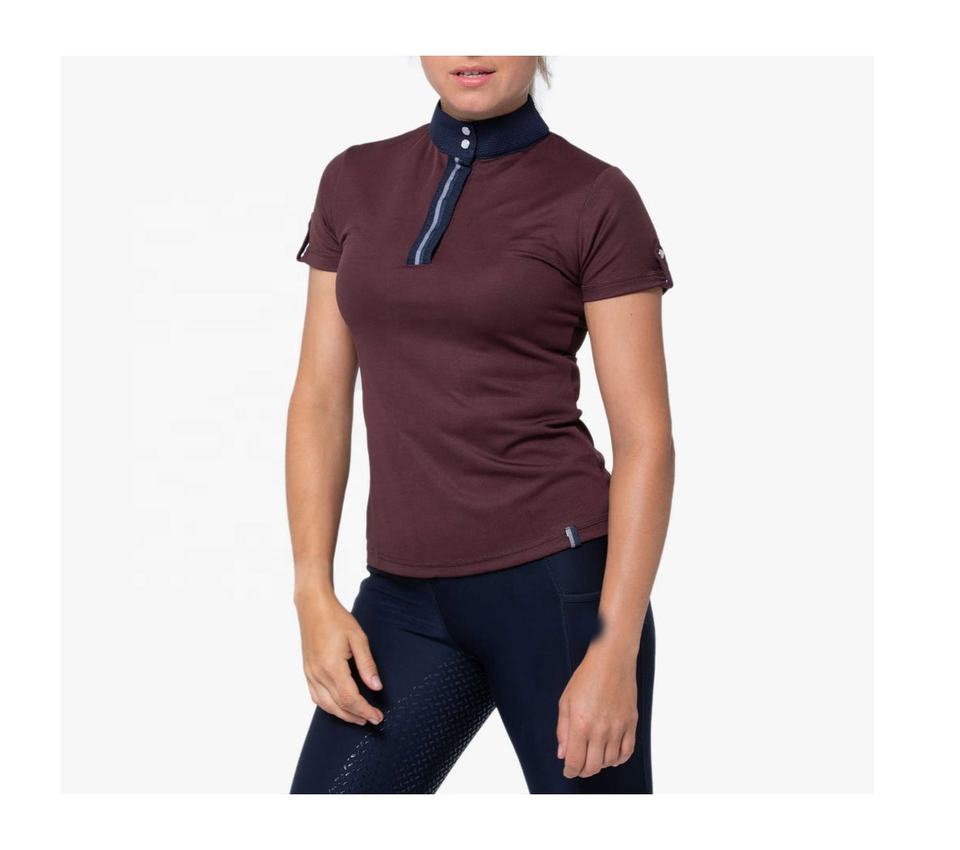 Camisetas de montar a caballo para mujer, camisas ecuestres de manga corta, botones de cuello de montar y camisa con cremallera, venta al por mayor