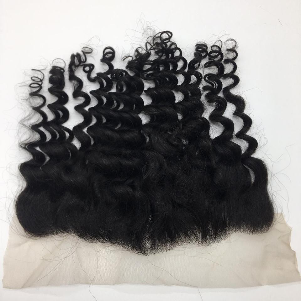 Venta al por mayor caliente de color negro frontal 13x4 extensiones de cabello humano cuerpo ondulado Cierre de encaje frontal