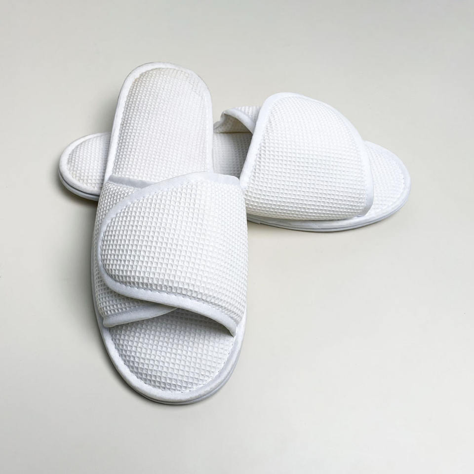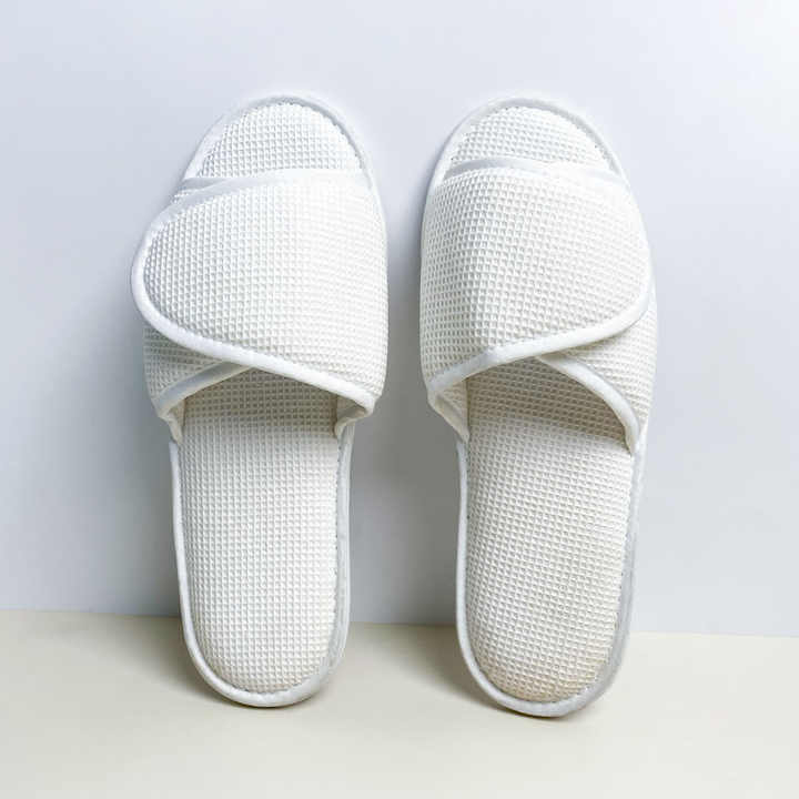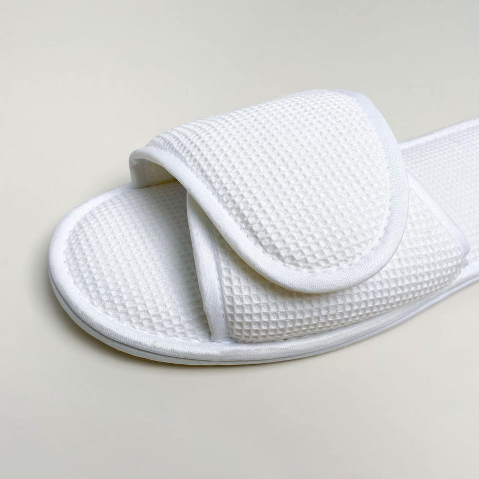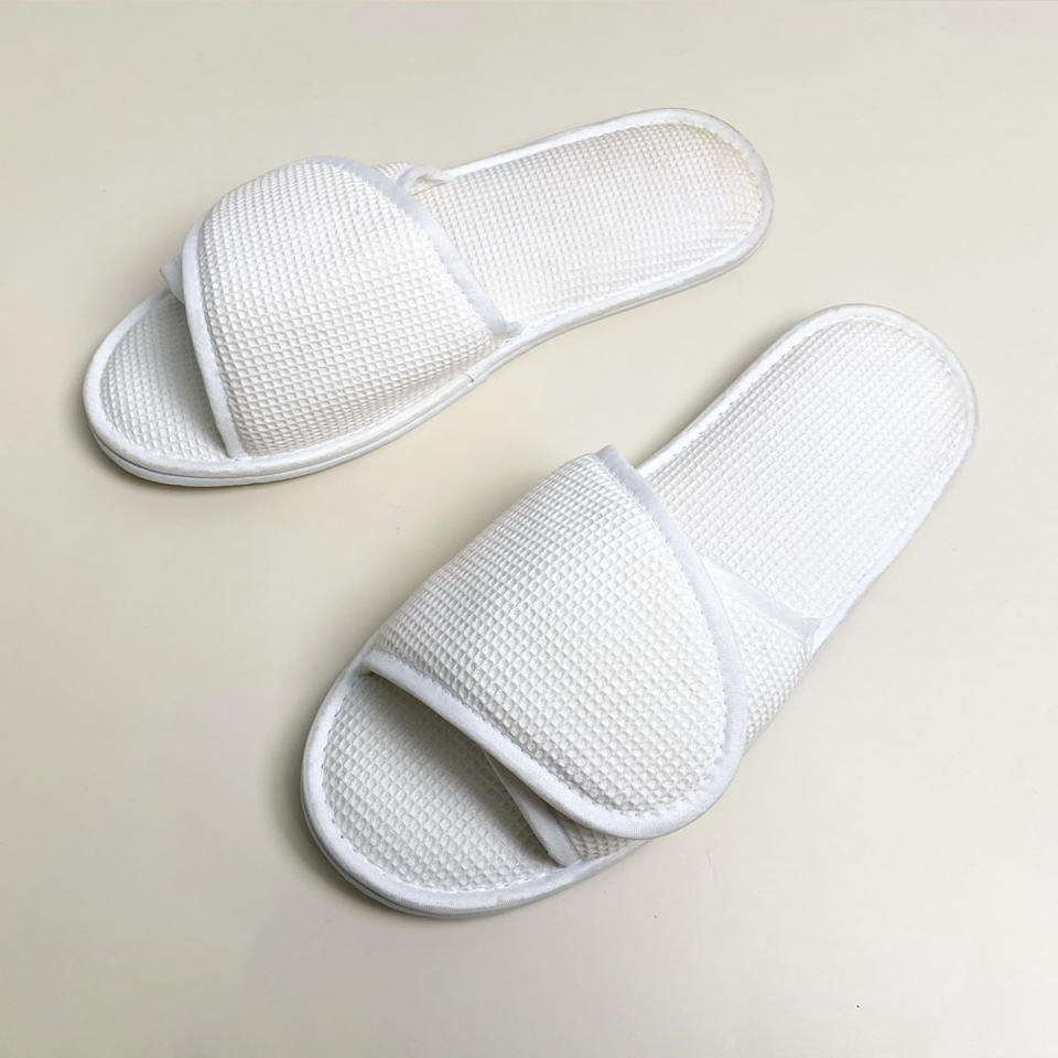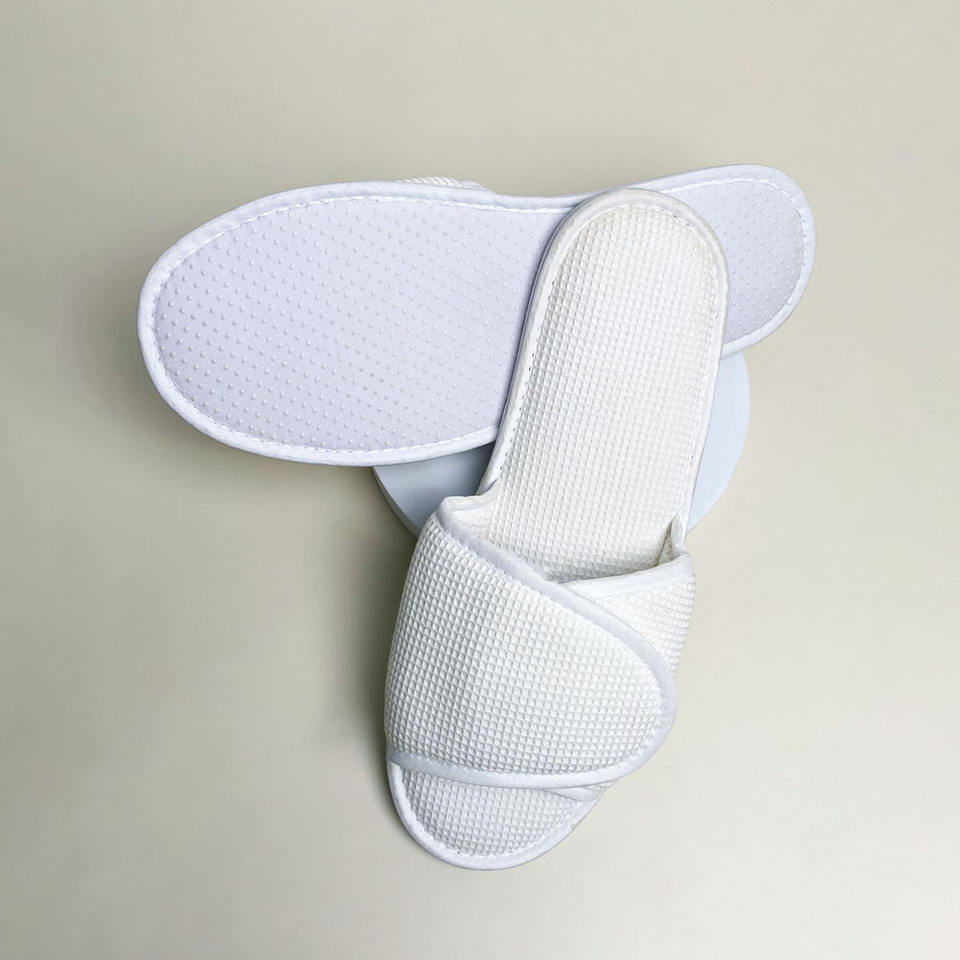 Zapatillas de hotel al por mayor, zapatillas desechables de spa con punta abierta todo incluido personalizadas, asequibles, ventas directas de fábrica