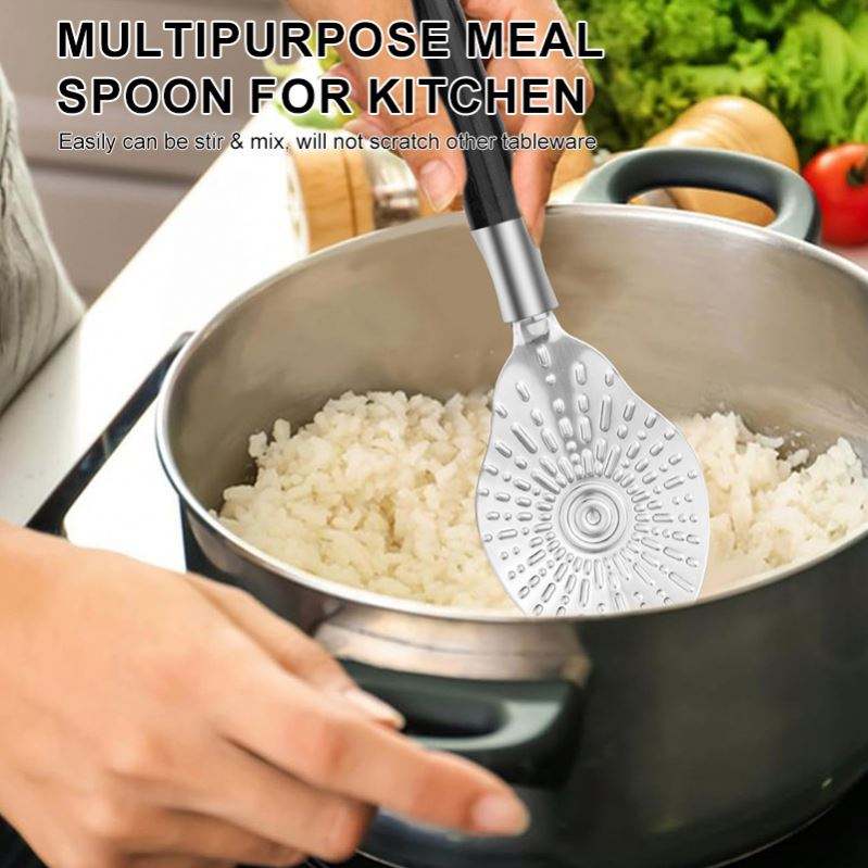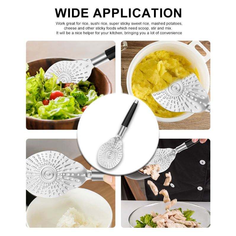 Cuchara de arroz al por mayor resistente al calor con mango de madera, espátula antiadherente para servir comida, ideal para restaurantes.