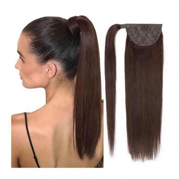 Nombre del Producto:Extensiones de cabello humano con clip de cola de caballo envolvente