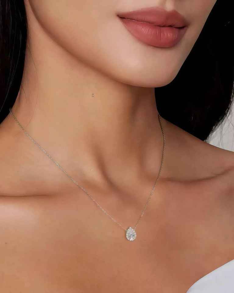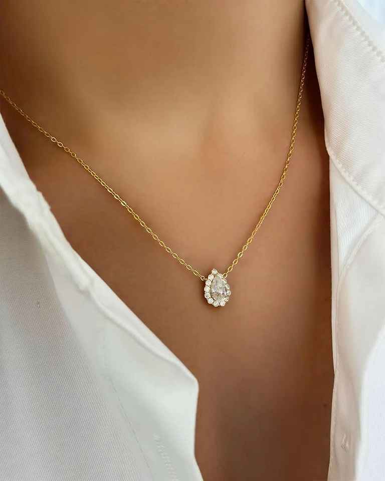 Collar con Colgante de Diamante Cultivado en Laboratorio con Certificación IGI, Diseño de Halo con Corte de Pera, Oro de 14K, Color Personalizado para Mujer, Venta al Por Mayor