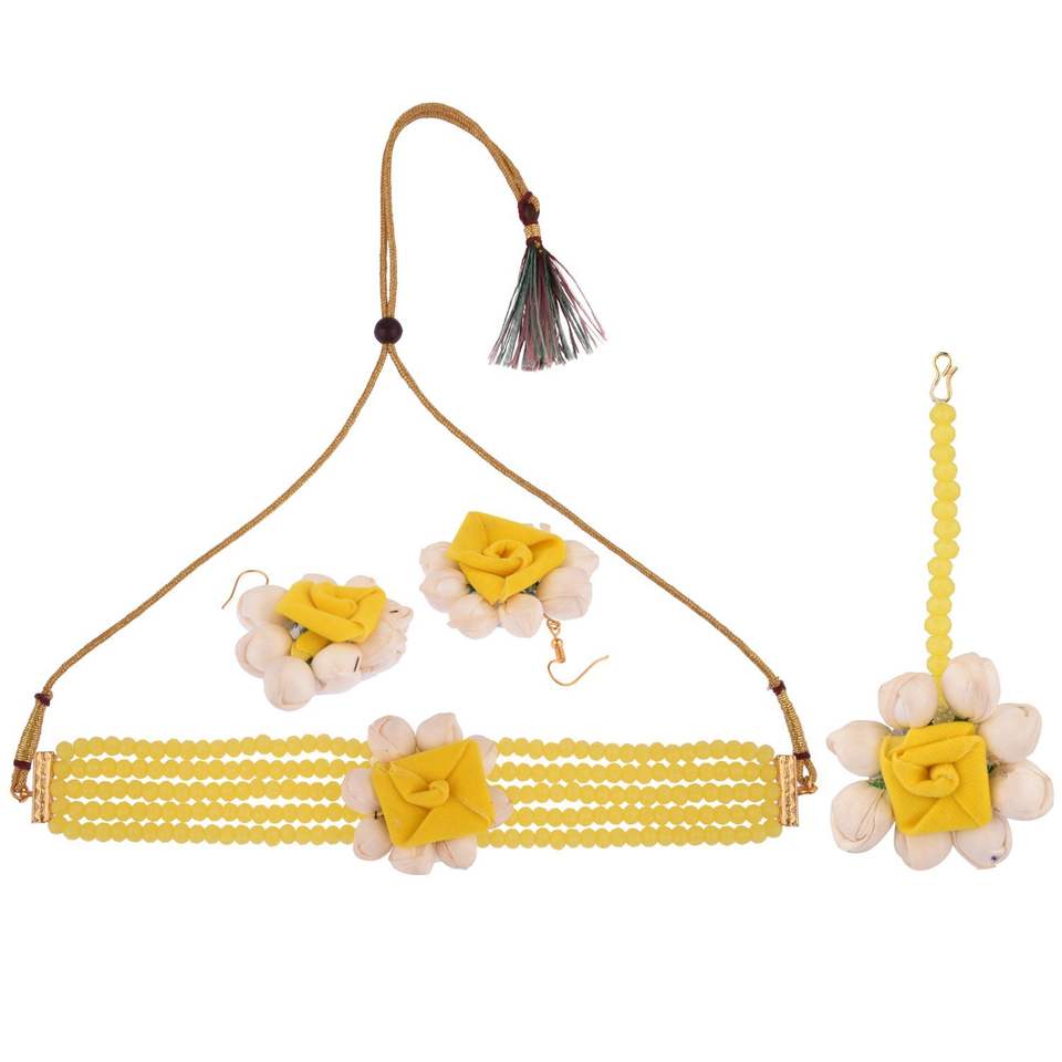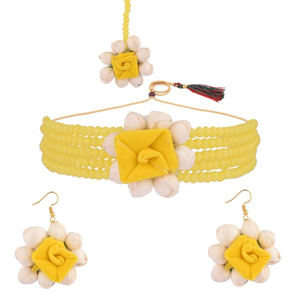 haldi floral designer choker neckalce jewellery set