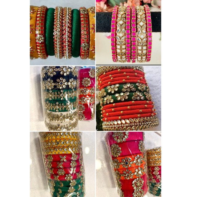 Colección de Brazaletes de Hilo de Seda India al por Mayor - Conjunto de Joyería Étnica con Trabajo Kundan Multicolor - Brazaletes para Novias y Festividades al por Mayor