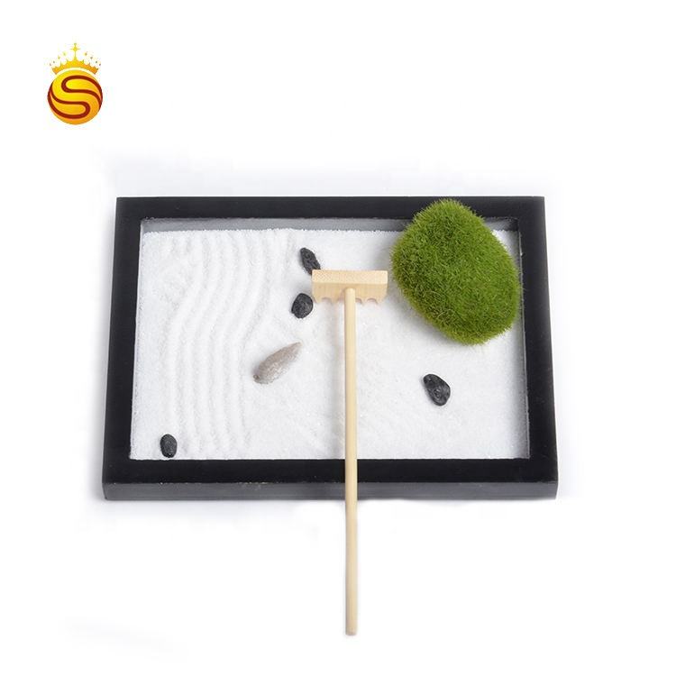 Venta al por mayor interior Zen Garden Kit cuadrado Mini Zen Sand Garden Kit meditación escritorio Zen Garden para terapia psicológica