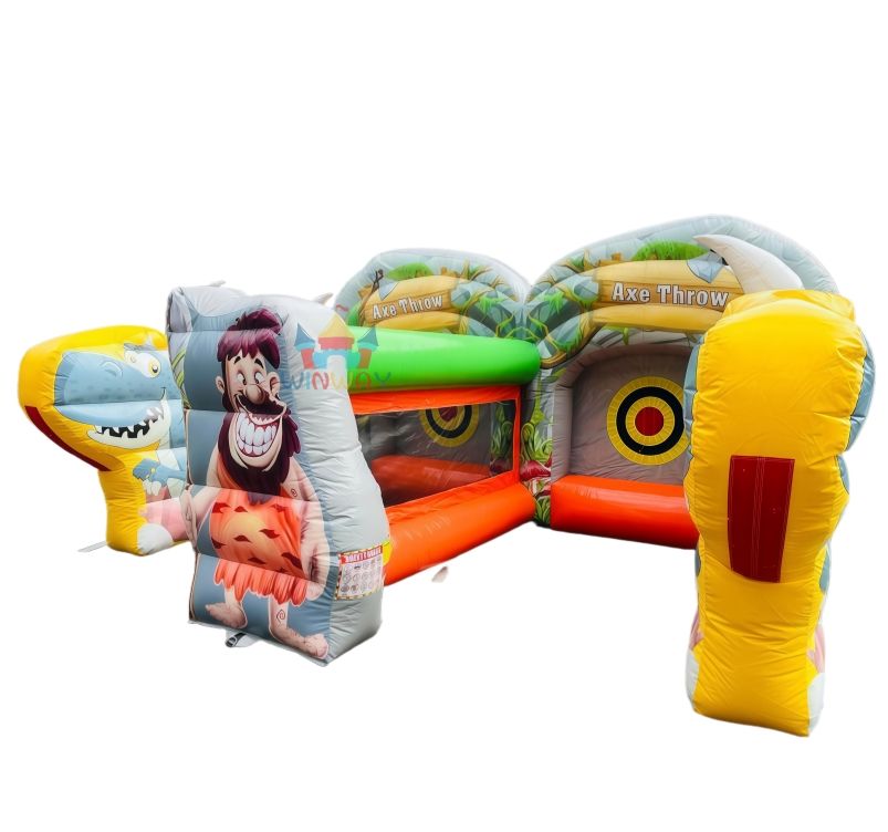 Juego de lanzamiento de hacha inflable al por mayor con tema de cavernícola para carnavales al aire libre parques de atracciones actividades de formación de equipos