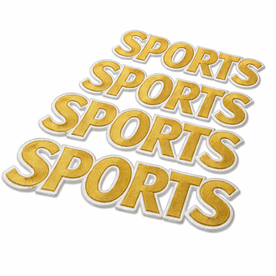 Parches de tela coloridos de forma irregular al por mayor, parches bordados con logotipo de letras personalizadas, con su diseño.