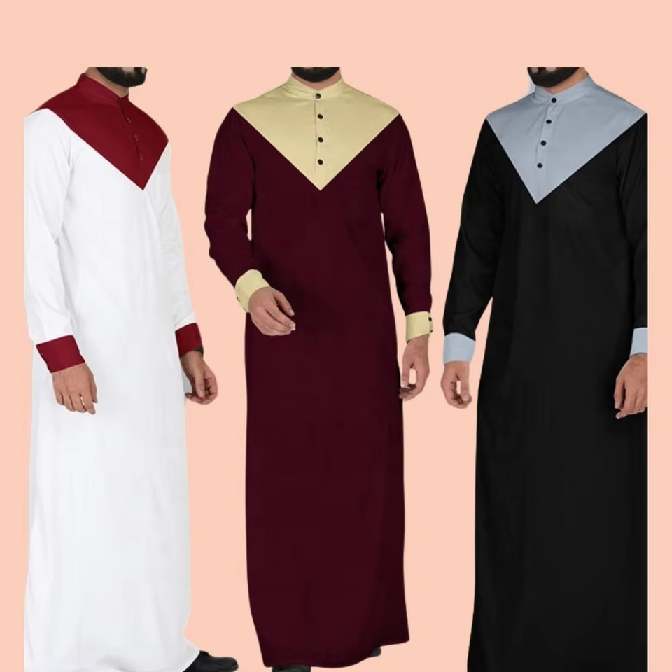 Venta al por mayor islámico Thobe diseño ropa para hombres negro Thobe hombres musulmán personalizado Panel diseño más tamaño transpirable ropa casual